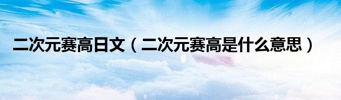大家好,小生來為大家講解下。二次元賽高日文,二次元賽高是什么意思很多人還不知道,現(xiàn)在讓我們一起來看看吧!