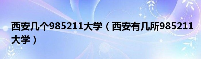 大家好,小生來為大家講解下。西安幾個985211大學(xué),西安有幾所985211大學(xué)很多人還不知道,現(xiàn)在讓我們一起來看看吧!