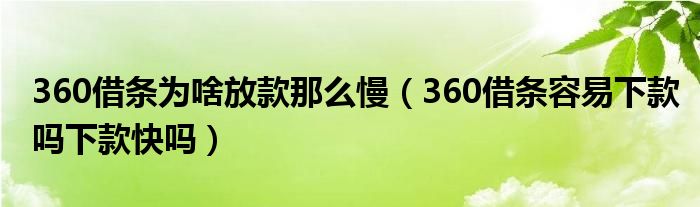 大家好,小生來為大家講解下。360借條為啥放款那么慢,360借條容易下款嗎下款快嗎很多人還不知道,現(xiàn)在讓我們一起來看看吧!