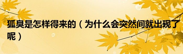 大家好,伊人來為大家解答以上問題。狐臭是怎樣得來的,為什么會(huì)突然間就出現(xiàn)了呢很多人還不知道,現(xiàn)在讓我們一起來看看吧!