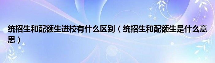大家好,小生來為大家講解下。統(tǒng)招生和配額生進(jìn)校有什么區(qū)別,統(tǒng)招生和配額生是什么意思很多人還不知道,現(xiàn)在讓我們一起來看看吧!