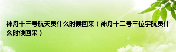 大家好,伊人來為大家解答以上問題。神舟十三號航天員什么時(shí)候回來,神舟十二號三位宇航員什么時(shí)候回來很多人還不知道,現(xiàn)在讓我們一起來看看吧!