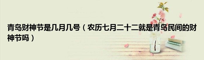 大家好,伊人來為大家解答以上問題。青島財(cái)神節(jié)是幾月幾號(hào),農(nóng)歷七月二十二就是青島民間的財(cái)神節(jié)嗎很多人還不知道,現(xiàn)在讓我們一起來看看吧!