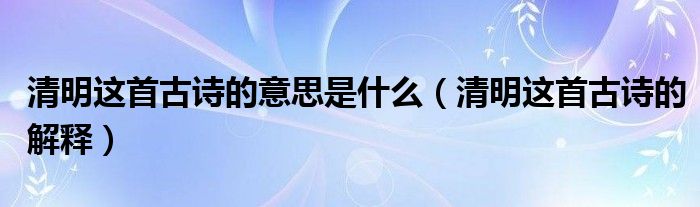大家好,伊人來為大家解答以上問題。清明這首古詩的意思是什么,清明這首古詩的解釋很多人還不知道,現(xiàn)在讓我們一起來看看吧!