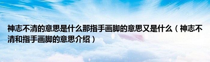 大家好,伊人來為大家解答以上問題。神志不清的意思是什么那指手畫腳的意思又是什么,神志不清和指手畫腳的意思介紹很多人還不知道,現(xiàn)在讓我們一起來看看吧!