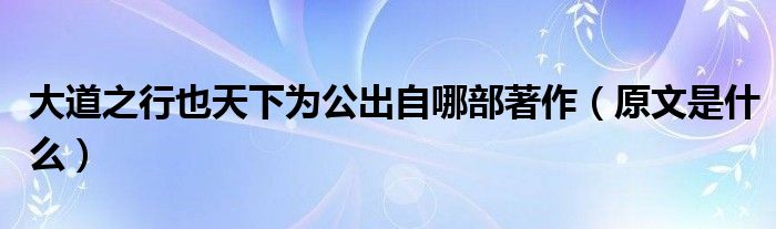 大家好,伊人來為大家解答以上問題。大道之行也天下為公出自哪部著作,原文是什么很多人還不知道,現(xiàn)在讓我們一起來看看吧!