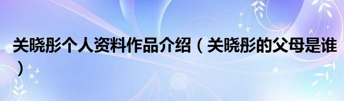 大家好,伊人來為大家解答以上問題。關曉彤個人資料作品介紹,關曉彤的父母是誰很多人還不知道,現(xiàn)在讓我們一起來看看吧!