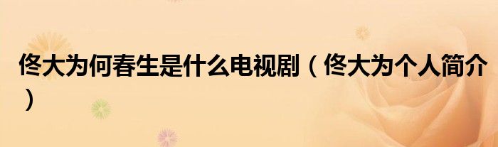 大家好,伊人來為大家解答以上問題。佟大為何春生是什么電視劇,佟大為個(gè)人簡(jiǎn)介很多人還不知道,現(xiàn)在讓我們一起來看看吧!