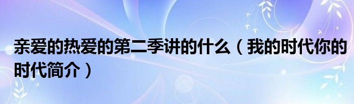 大家好,伊人來為大家解答以上問題。親愛的熱愛的第二季講的什么,我的時代你的時代簡介很多人還不知道,現(xiàn)在讓我們一起來看看吧!