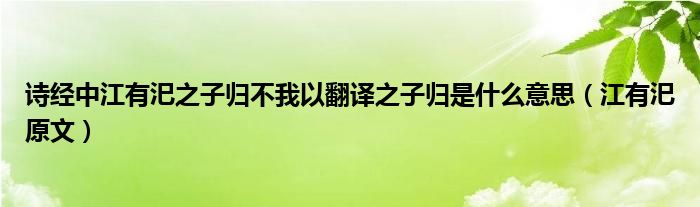 大家好,伊人來為大家解答以上問題。詩經(jīng)中江有汜之子歸不我以翻譯之子歸是什么意思,江有汜原文很多人還不知道,現(xiàn)在讓我們一起來看看吧!