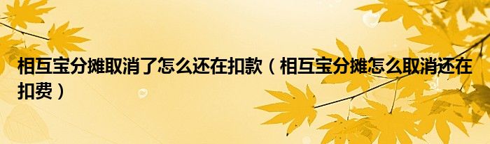 大家好,小育來為大家講解下。相互寶分攤?cè)∠嗽趺催€在扣款,相互寶分攤怎么取消還在扣費很多人還不知道,現(xiàn)在讓我們一起來看看吧!