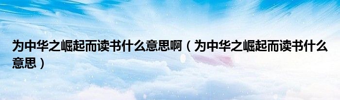 大家好,小育來為大家講解下。為中華之崛起而讀書什么意思啊,為中華之崛起而讀書什么意思很多人還不知道,現(xiàn)在讓我們一起來看看吧!