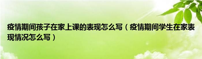 大家好,小育來為大家講解下。疫情期間孩子在家上課的表現(xiàn)怎么寫,疫情期間學生在家表現(xiàn)情況怎么寫很多人還不知道,現(xiàn)在讓我們一起來看看吧!