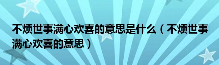 大家好,小育來為大家講解下。不煩世事滿心歡喜的意思是什么,不煩世事 滿心歡喜的意思很多人還不知道,現(xiàn)在讓我們一起來看看吧!