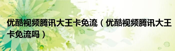 大家好,小育來為大家講解下。優(yōu)酷視頻騰訊大王卡免流,優(yōu)酷視頻騰訊大王卡免流嗎很多人還不知道,現(xiàn)在讓我們一起來看看吧!
