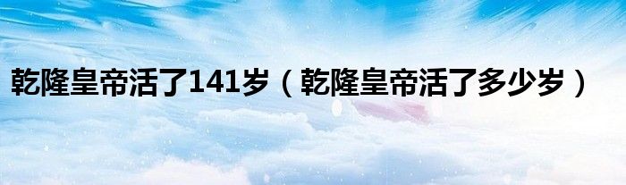 大家好,小育來為大家講解下。乾隆皇帝活了141歲,乾隆皇帝活了多少歲很多人還不知道,現(xiàn)在讓我們一起來看看吧!
