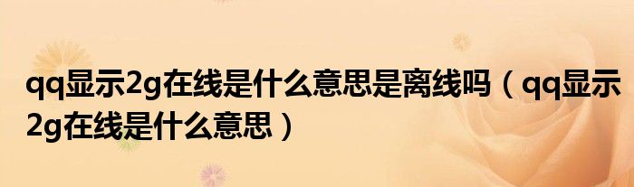 大家好,小育來(lái)為大家講解下。qq顯示2g在線(xiàn)是什么意思是離線(xiàn)嗎,qq顯示2g在線(xiàn)是什么意思很多人還不知道,現(xiàn)在讓我們一起來(lái)看看吧!