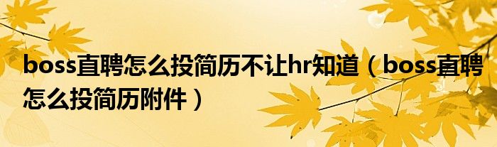 大家好,小育來為大家講解下。boss直聘怎么投簡歷不讓hr知道,boss直聘怎么投簡歷附件很多人還不知道,現(xiàn)在讓我們一起來看看吧!