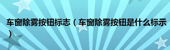 大家好,小育來為大家講解下。車窗除霧按鈕標志,車窗除霧按鈕是什么標示很多人還不知道,現(xiàn)在讓我們一起來看看吧!
