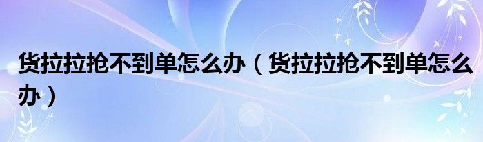 大家好,小育來為大家講解下。貨拉拉搶不到單怎么辦,貨拉拉搶不到單怎么辦很多人還不知道,現(xiàn)在讓我們一起來看看吧!