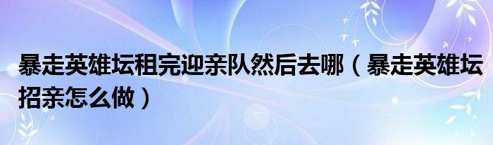 大家好,小育來為大家講解下。暴走英雄壇租完迎親隊然后去哪,暴走英雄壇招親怎么做很多人還不知道,現(xiàn)在讓我們一起來看看吧!