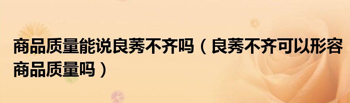大家好,小育來為大家講解下。商品質(zhì)量能說良莠不齊嗎,良莠不齊可以形容商品質(zhì)量嗎很多人還不知道,現(xiàn)在讓我們一起來看看吧!