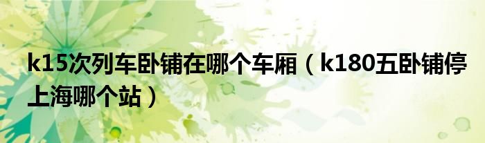 大家好,小育來為大家講解下。k15次列車臥鋪在哪個車廂,k180五臥鋪停上海哪個站很多人還不知道,現(xiàn)在讓我們一起來看看吧!
