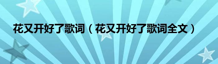 大家好,伊人來為大家解答以上問題?;ㄓ珠_好了歌詞,花又開好了歌詞全文很多人還不知道,現(xiàn)在讓我們一起來看看吧!