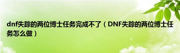 大家好,小育來(lái)為大家講解下。dnf失蹤的兩位博士任務(wù)完成不了,DNF失蹤的兩位博士任務(wù)怎么做很多人還不知道,現(xiàn)在讓我們一起來(lái)看看吧!