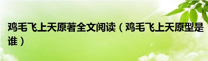 大家好,小育來(lái)為大家講解下。雞毛飛上天原著全文閱讀,雞毛飛上天原型是誰(shuí)很多人還不知道,現(xiàn)在讓我們一起來(lái)看看吧!