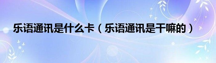 大家好,小育來為大家講解下。樂語通訊是什么卡,樂語通訊是干嘛的很多人還不知道,現(xiàn)在讓我們一起來看看吧!