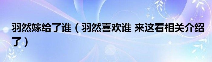 大家好,小育來為大家講解下。羽然嫁給了誰,羽然喜歡誰 來這看相關(guān)介紹了很多人還不知道,現(xiàn)在讓我們一起來看看吧!