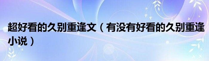大家好,小育來為大家講解下。超好看的久別重逢文,有沒有好看的久別重逢小說很多人還不知道,現(xiàn)在讓我們一起來看看吧!