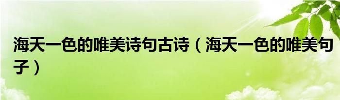 大家好,小育來為大家講解下。海天一色的唯美詩句古詩,海天一色的唯美句子很多人還不知道,現(xiàn)在讓我們一起來看看吧!