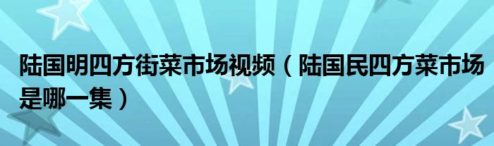 大家好,小育來為大家講解下。陸國明四方街菜市場(chǎng)視頻,陸國民四方菜市場(chǎng)是哪一集很多人還不知道,現(xiàn)在讓我們一起來看看吧!
