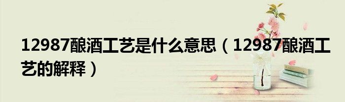 大家好,伊人來(lái)為大家解答以上問(wèn)題。12987釀酒工藝是什么意思,12987釀酒工藝的解釋很多人還不知道,現(xiàn)在讓我們一起來(lái)看看吧!