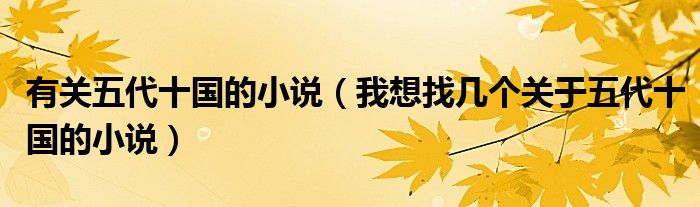 大家好,小育來為大家講解下。有關(guān)五代十國的小說,我想找?guī)讉€關(guān)于五代十國的小說很多人還不知道,現(xiàn)在讓我們一起來看看吧!