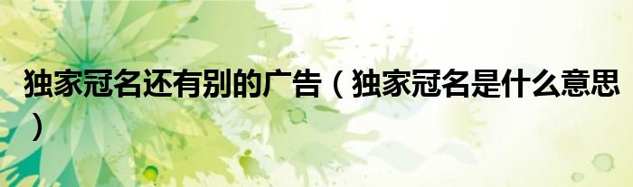 大家好,小育來為大家講解下。獨(dú)家冠名還有別的廣告,獨(dú)家冠名是什么意思很多人還不知道,現(xiàn)在讓我們一起來看看吧!