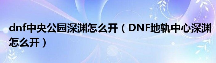 大家好,小育來(lái)為大家講解下。dnf中央公園深淵怎么開,DNF地軌中心深淵怎么開很多人還不知道,現(xiàn)在讓我們一起來(lái)看看吧!