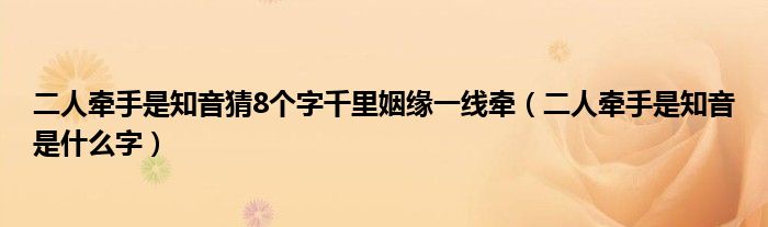 大家好,小育來(lái)為大家講解下。二人牽手是知音猜8個(gè)字千里姻緣一線牽,二人牽手是知音是什么字很多人還不知道,現(xiàn)在讓我們一起來(lái)看看吧!