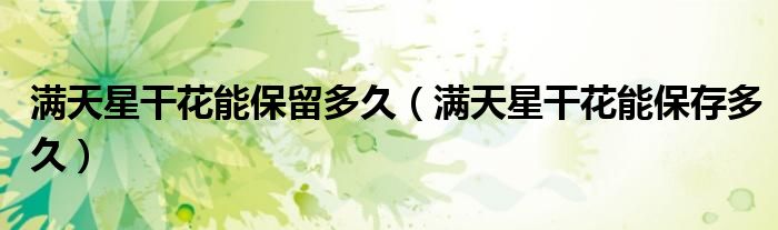大家好,小育來為大家講解下。滿天星干花能保留多久,滿天星干花能保存多久很多人還不知道,現(xiàn)在讓我們一起來看看吧!