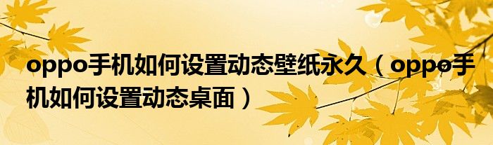 大家好,小育來為大家講解下。oppo手機(jī)如何設(shè)置動(dòng)態(tài)壁紙永久,oppo手機(jī)如何設(shè)置動(dòng)態(tài)桌面很多人還不知道,現(xiàn)在讓我們一起來看看吧!