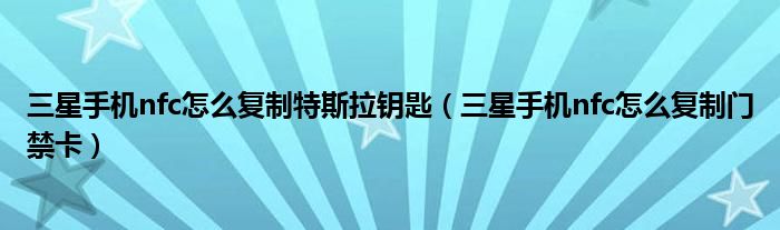 大家好,小育來為大家講解下。三星手機nfc怎么復制特斯拉鑰匙,三星手機nfc怎么復制門禁卡很多人還不知道,現(xiàn)在讓我們一起來看看吧!