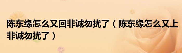 大家好,小育來為大家講解下。陳東緣怎么又回非誠勿擾了,陳東緣怎么又上非誠勿擾了很多人還不知道,現(xiàn)在讓我們一起來看看吧!