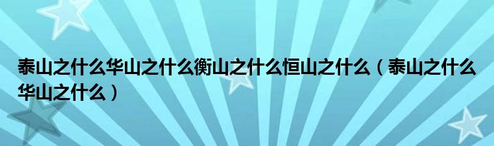 大家好,小育來為大家講解下。泰山之什么華山之什么衡山之什么恒山之什么,泰山之什么華山之什么很多人還不知道,現(xiàn)在讓我們一起來看看吧!