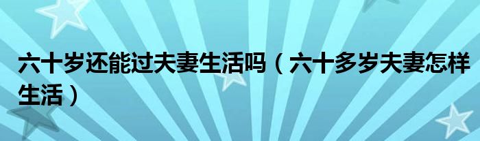 大家好,小育來為大家講解下。六十歲還能過夫妻生活嗎,六十多歲夫妻怎樣生活很多人還不知道,現(xiàn)在讓我們一起來看看吧!