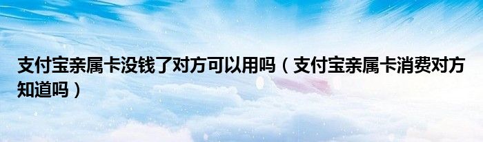 大家好,小育來為大家講解下。支付寶親屬卡沒錢了對方可以用嗎,支付寶親屬卡消費(fèi)對方知道嗎很多人還不知道,現(xiàn)在讓我們一起來看看吧!