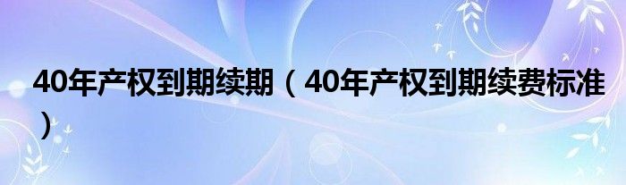 大家好,小育來為大家講解下。40年產(chǎn)權(quán)到期續(xù)期,40年產(chǎn)權(quán)到期續(xù)費(fèi)標(biāo)準(zhǔn)很多人還不知道,現(xiàn)在讓我們一起來看看吧!