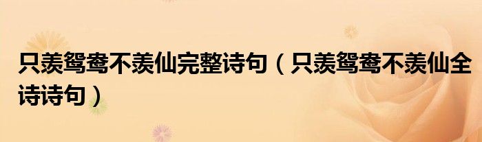 大家好,小育來(lái)為大家講解下。只羨鴛鴦不羨仙完整詩(shī)句,只羨鴛鴦不羨仙全詩(shī)詩(shī)句很多人還不知道,現(xiàn)在讓我們一起來(lái)看看吧!