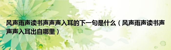 大家好,伊人來(lái)為大家解答以上問(wèn)題。風(fēng)聲雨聲讀書(shū)聲聲聲入耳的下一句是什么,風(fēng)聲雨聲讀書(shū)聲聲聲入耳出自哪里很多人還不知道,現(xiàn)在讓我們一起來(lái)看看吧!